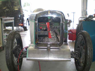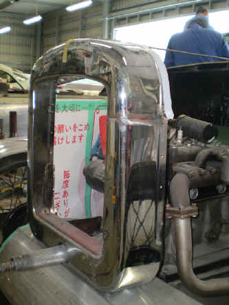 標準仕様のラジエーターシェルをボディに合わせてカットし加工しました。 なお、エンジンフードは小さいながらも左右両開きとしました。 |