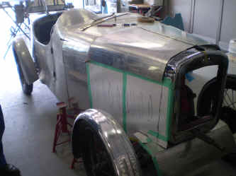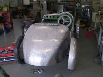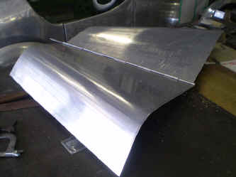 フロントのラジエータシェル下にバランスパネルを製作します。 これによりフロントからの形状の繋がりが良くなりました。 勿論、前後のウィング(フェンダパネル)も製作します。 |