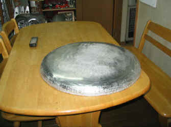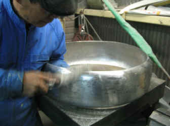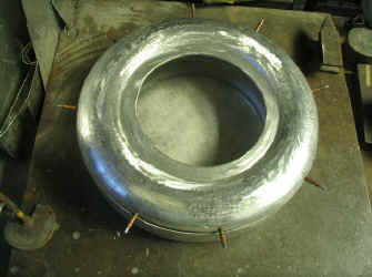 タイヤカバー内側の粗材形状完成です! もちろん、これで完成ではありません。 ここから更にハンマリングを繰り返し、形状を作り込んで行きます。 |