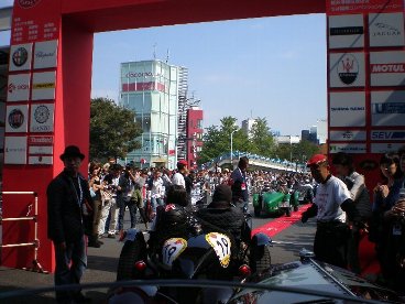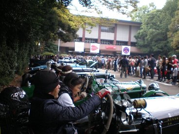 | 明治神宮のスタート前の広場に集合していよいよスタートです。 神宮をスタートした参加車たちは一路、軽井沢を目指します。 | |