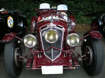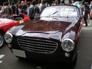 集まった車の中で、今年の目玉がこの”フェラーリ340AMERICAN”です。美しいボディに目を奪われます。 そして、もう1台のフェラーリがこの”166インター”、ヴィニアーレ製のボディが渋いです。 |