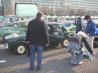 会場に到着しました。 指定された場所に車両(モーリス)を展示します。 沢山の方に見て頂きました。 |