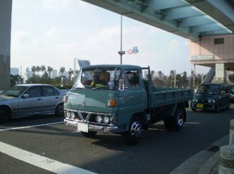 会場の外には 三菱キャンター?が信号待ちです。 |