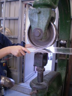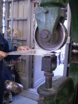 ローラーをまわして、そこへアルミの板を滑り込ませます。 |