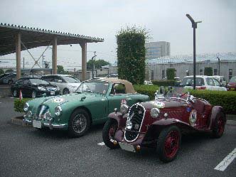 途中のCP ALSOKの駐車場内でのバリラ、DB2/4、ベントレートラゴンダです。 |