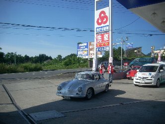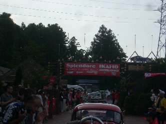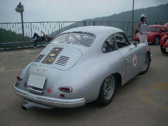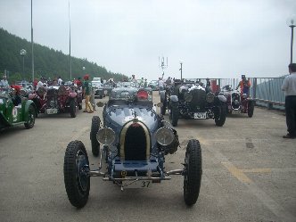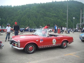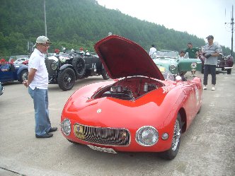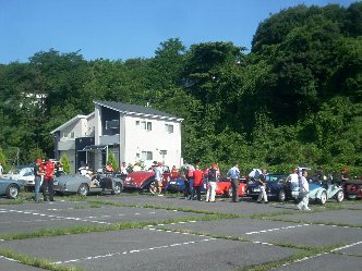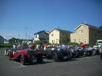 スキー場駐車場CP会場に待機する車両たち。 スタンゲリーニ1100Sフルア、SL300、ポルシェ356GSカレラ、ブガッティT37A RRファントムT、SL280。 |
