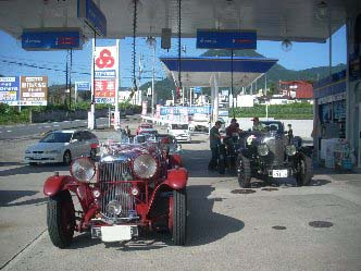 給油中のラゴンダとALVISスピード20SC。 その他車輌も「食事中」です。 |