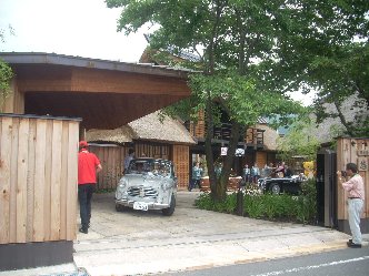 昼食会場から出発するフィアット1100TV。 昼食会場の川場温泉かやぶきの源泉湯宿悠湯里庵は、とても良い雰囲気で個人的にもまた行ってみたい場所でした。 |