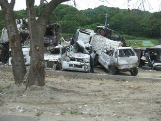 先日の宮古市への軽自動車2台及び支援物資に引き続き、第2弾として今回は岩手県山田町に軽自動車2台をお届け致しました。 前回の宮古市から10キロほど南下した場所にある 山田町役場は、高台と言う事もあり建物は無事でしたが、役場の前も津波によって全てがながされており、火災で焼失した建物が少し残っている以外は何もありません。 こんな中で必死に戦っている方々がいらっしゃる中、われわれは微力ですがお手伝いを続けて参りたいと思います。
