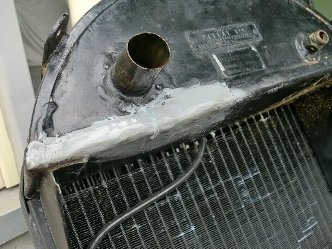 早速分解作業を開始すると、ラジエーターは水漏れの痕跡がありました。 |