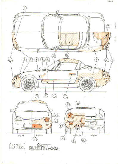 スズキカプチーノの外装パーツをアルミ板金で作りつつ、デザインを変更、 全く雰囲気の違う車両製作のご依頼を頂きました。
