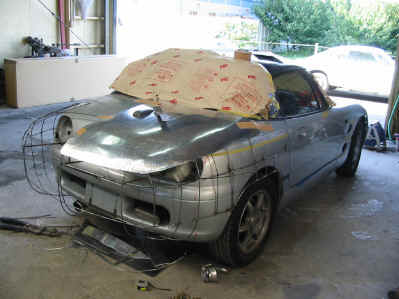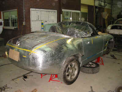 スズキカプチーノの外装パーツをアルミ板金で作りつつ、デザインを変更、 全く雰囲気の違う車両製作のご依頼を頂きました。