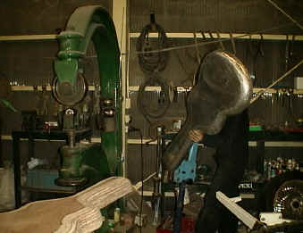 出来た木型を元に成型を行います。 今回は軽量が第1目的ですので、1mm厚のアルミニウム板を使用します。 |