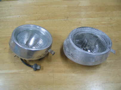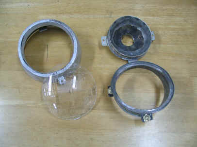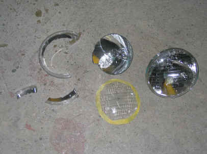 まずは要のレンズ調達です。 形状が最も近かったシールドビームを分解して、レンズのみを分離します。 勿論使用する部分以外は勿体無いですが、廃棄処分。 |
