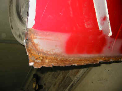 この頃の車は、折込部分(特にドア下部の折込部分など)は水分が抜けず、この様に錆びてしまう事が多いですね。