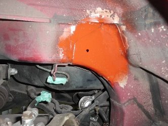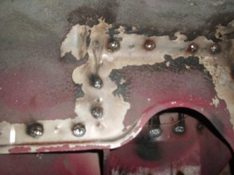 ホイールハウス内フレーム部も一部腐食がありましたので切継ぎにて修理。 右下画像が修理前、左下画像が修理後です。 |