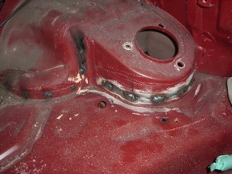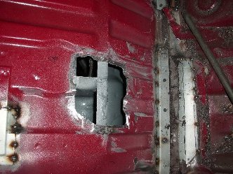 車内とトランクを隔てる隔壁にも腐食がありました。合わせて修理致します。 右下画像が修理前、左下画像が修理後です。 |