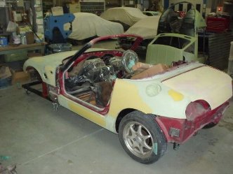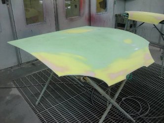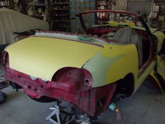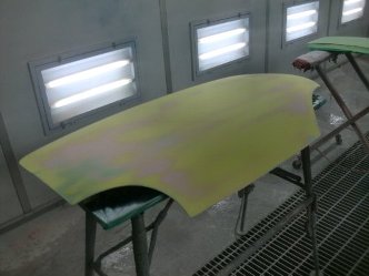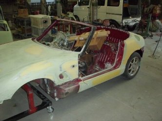 大きな腐食の鈑金が終わり各部のパネル修正等を行います。 面だし作業等を行いいよいよ塗装です。 |