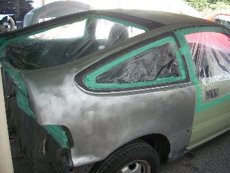 綺麗に旧塗装を剥離し、サーフェーサーを塗装して錆止めしました。 |