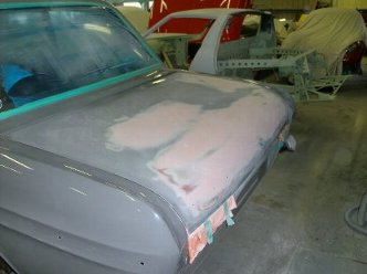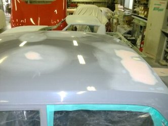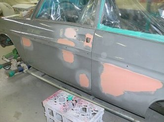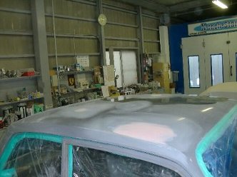 下地の修復が完了しましたので、一旦サフェを吹いてボディを保護します。 |