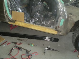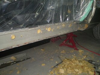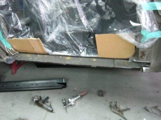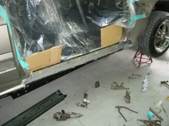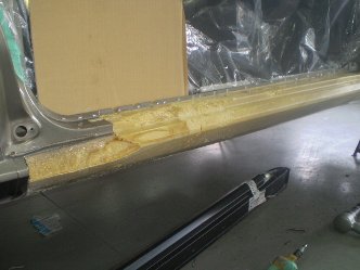 お客様からのご注文によりロッカーパネルを切開、ウレタンフォームの除去を行ない ます。 |