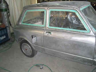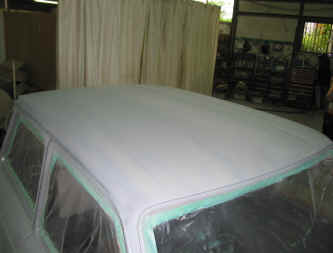 前回の塗装剥離した地金状態では、作業進行中にも発錆する場合がありますので、サーフェイサーを塗装し表面を保護します。