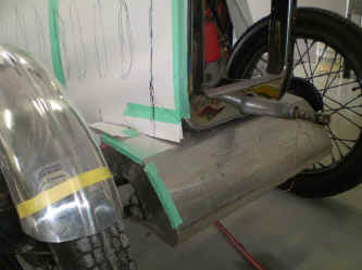フロントのラジエータシェル下にバランスパネルを製作します。 これによりフロントからの形状の繋がりが良くなりました。 勿論、前後のウィング(フェンダパネル)も製作します。 |
