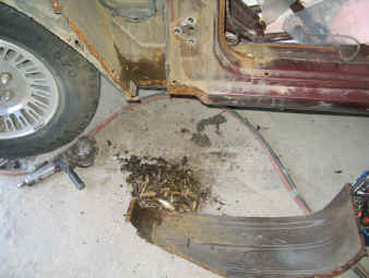 ここはフロントワイパーの下部に当る部分です。 結構錆びてます。 下回りとは違い、ボディーの上に属している部分ですが、奥まった場所なので錆が進み易い場所です。