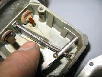 次は、燃料メータがきちんと作動しませんでしたので、センダユニットの交換です。 ちなみにこのセンダユニットは現在の車でも同じ構造ですので、中身をご覧ください。 構造は至ってシンプル! 真中の画像の右側にあるレバーがフロートに繋がっており、燃料の油面上に浮いております。 レバーは下にあるコイル状の抵抗線上を左右に動くことにより、レバーの動きを抵抗値に変換、そこに一定電圧を供給すると、抵抗値変化を電圧変化として出力する仕組みです。 ちなみに一番下の画像の部位が故障原因。 レバーに繋がっている接点が削れて、接触不良となっておりました。 今回は新品の互換性のあるセンダユニットが入りましたので、そっくり交換。 交換完了です! それにしても、ワイパーとセンダユニットだけは、何時の時代でも変わりませんね。 |