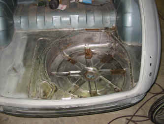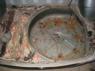 腐食したタイヤハウスも含めてボディ全体の塗料を剥離剤ではがします・・・・・・・ |