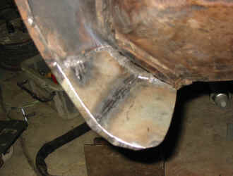 問題ない部分まで切り取り、鋼板を同じ様に成型した後、溶接で繋いであります。 |