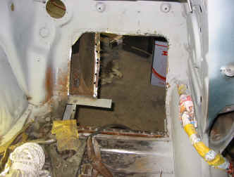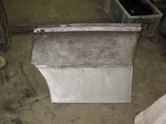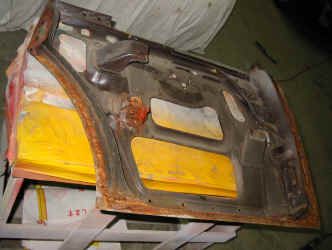 しかし外板の下部は旧車の場合、例外なく腐食しておりますので下半分を切除したあとに新しく繋ぎ合わせます。