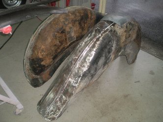 で、外装を確認して行くと、左右リヤウィングの修理部位に腐食を発見しました。 年代から考えれば、仕方ないですよね。 なお、当該部位は前回の修理の状態が悪いので新規製作となりました。