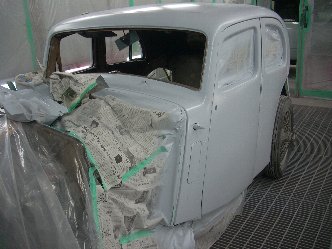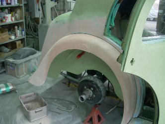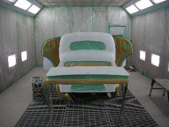 画像の通り、パネルを仮組して面修正を行ないます。 サフェーサーを吹く為、一度分解してブースに運び込みます。 |