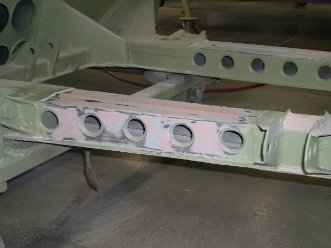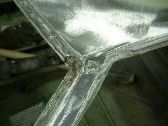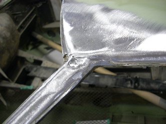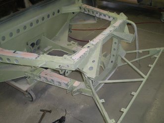 メインモノコックのアウタースキンの修正に入ります。 まずはモノコックメインピラー部の接合部分の修正を行います。続いて、 リヤフレームの修正も行いました。