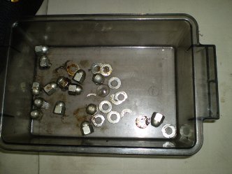 ■ヘッドのスタッドボルトから外部にオイルがリークして溜っている ■ENGマウントがへたり、フレームにENGが直接乗ってしまっている。 また、フレームの一部を切断した箇所がある。 ■フロントバンクとリアバンクのガスケットが間違っており、ヘッドボルトのワッシャーも破断している。