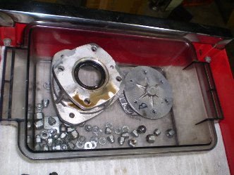 さて、今回はオイルの循環を見直して(スプリットサンプ加工)、よりスムーズなエンジンを目指しますが、お預かり時にエンジン内部に水が廻っているとの御指摘をオーナー様からお聞きしていました。 そこで分解してみると、オイルチェンジャーの画像の通り、オイルが乳白色状の液体となっておりました。 明らかにガスケット抜けです。
