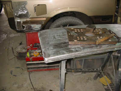 今回はサンルーフを修理しましょう。 ご覧の通り、2重構造の部分を分解すると、ドア下部の様に錆びて朽ち果てております。 骨組み側は錆びておりますが、表面のみの錆でとどまっておりますので、骨組み側は錆落し及び防錆を行った後、再利用することとします。 |
