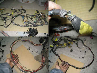 次は、車の神経となる配線をレストアをご覧ください。 この様な部分は自社では行わず、きちんとした技術を持つ自動車電装屋さんにお任せします。 一度配線を分解し、状態を確認しながら、痛んでいる部分や配線を保護するコルゲートチューブなどを交換します。 配線をレストアしないのであれば、レストアする意味が無い位に配線のメンテナンスは重要です。 |