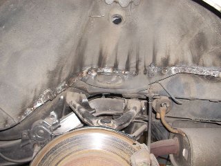 手軽な補強方法として、発泡ウレタンの注入がありますが、1シーズンのみ使用する様なレース車両と違い一般的な車両の場合はお勧めできません。 (ウレタン素材の加水分解による劣化及び施工時に発生する切りくずによる錆等を勘案し、当社ではウレタン注入をお受けしておりません。) そこで、基本的な補強方法として、スポット増しを導入します。 M30に施工した際と同じく、全体のバランスを考えながらスポット増しを行います。 |