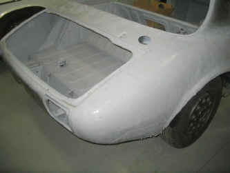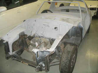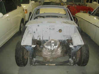 今回はボディの剥離作業を行いました。 稀に見るパテの厚さに閉口しておりましたが現状を把握するため 今回はモノコックボディ全体のブラスト加工を行いました。 ワイパーの取付部分(カウルトップ)は思ったほど痛んでいませんでした。 パテが厚かったのは他に合わせて盛っていただけのようです。 これより本格的な板金修理作業に入ります。