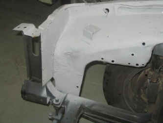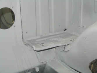 左右リヤフェンダー下は腐食部分の上から何度も貼り付けた痕跡が見られました。 |