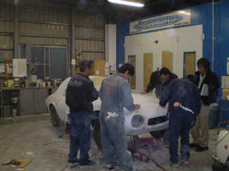 塗装に入る前に板金作業の確認を行いましょう。 弊社では、塗装に入る前の板金作業確認ミーティングを、板金スタッフ及び、塗装スタッフを含めてチェックを行います。 項目はパネルの合い具合、チリ、表面のハイライト等です。 勿論、上記ミーティングにより問題が発見されれば、修正の後に再度ミーティングを行います。 (レストア作業はチーム制で行う為、板金状態及び作業進行レベル等を確認する必要があるのです。) この作業は完成レベル向上の為に、必ず実施しております。 |