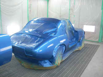 上記ミーティングにて問題ないことが確認できましたので、塗装に入ります。 今回はオリジナルに拘らずにアルピーヌA110を参考にしながらブルーメタリックでのオールペイントとなりました。 塗装後、組み付け作業を行えば、いよいよ完成です。
