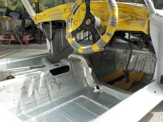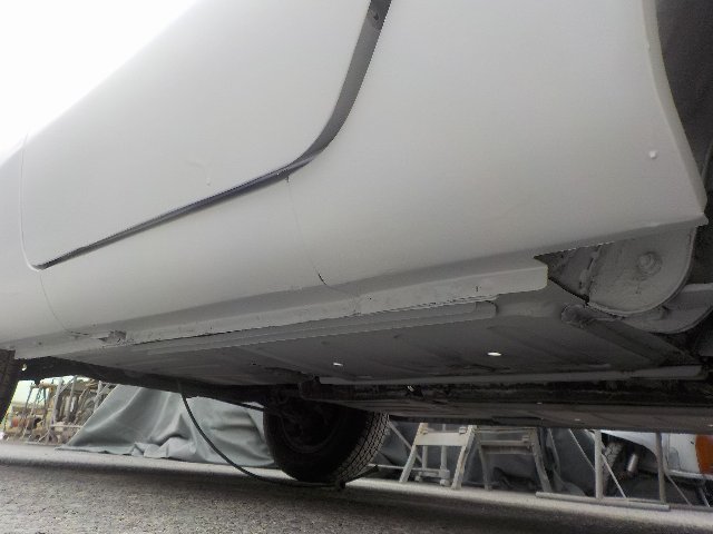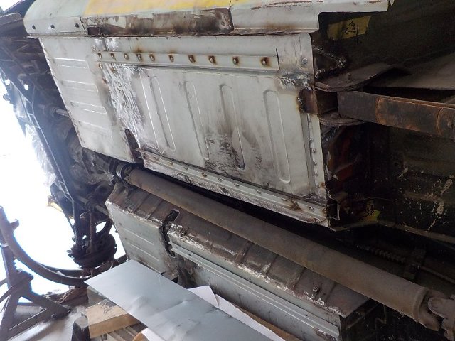 フロアパネルを制作して張替を行いました。 同部位は腐食してボロボロの車両が多いので注意してください |